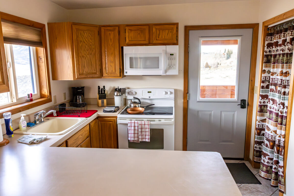 The Overlook’s cabins have self-serve kitchens for preparing meals and open floor plans that are perfect for group dining and evening activities.