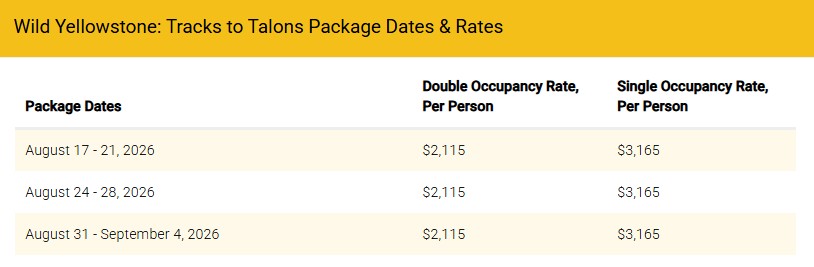 The Wild Yellowstone: Tracks to Talons Lodging & Learning package focuses on the diverse and vibrant wildlife that calls this iconic landscape home. Dive into the world of Yellowstone’s top predators. Track wolves, bears, and other carnivores as they roam their natural habitats, learning about their behaviors, hunting strategies, and roles in the ecosystem. Then explore the lives of Yellowstone’s majestic ungulates. From bison and elk to bighorn sheep and pronghorn, witness these herbivores in their natural settings and understand their migration patterns and grazing habits. Conclude your adventure with a day dedicated to the park’s avian wonders. Engage in birdwatching activities, identify various bird species, and discover the unique adaptations and migratory journeys of Yellowstone’s feathered friends.