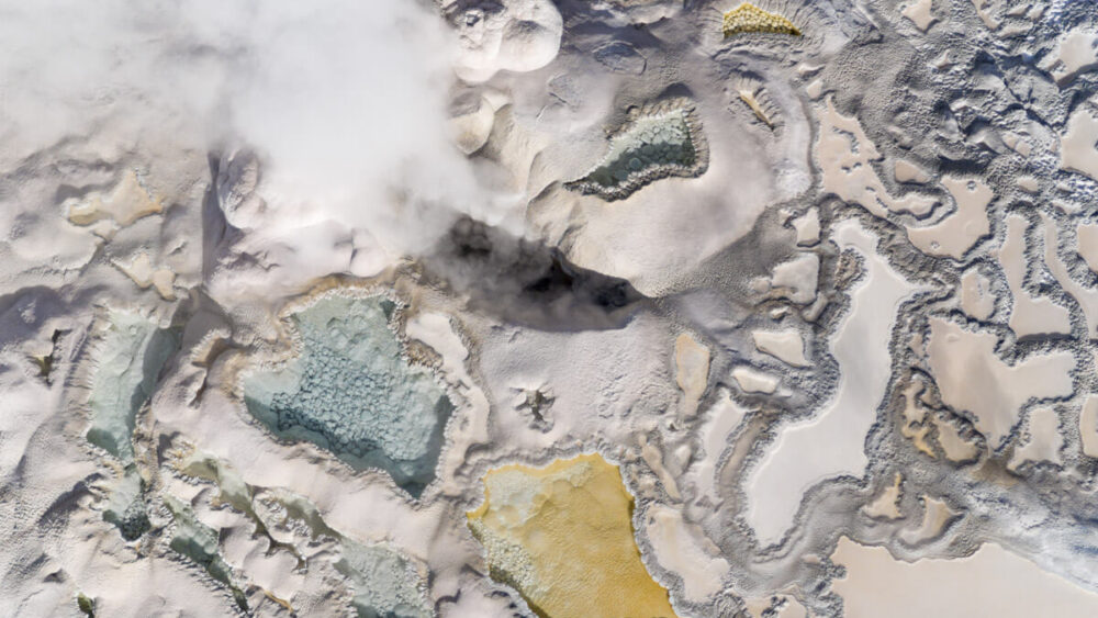 Feature: Old Faithful close-up aerial image for scientific purposes (Taken by NPS, drones not permitted by public)